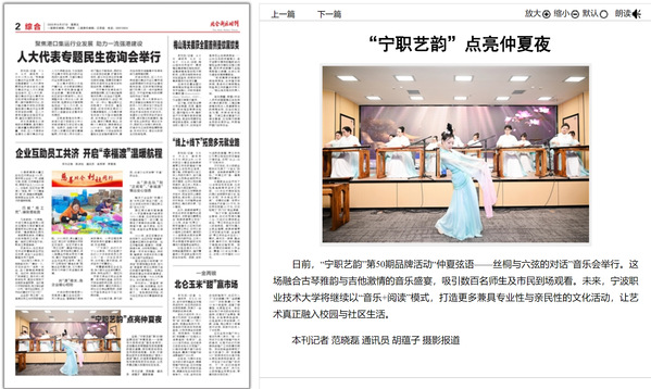日前,“宁职艺韵”第50期品牌活动“仲夏弦语——丝桐与六弦的对话”音乐会举行。这场融合古琴雅韵与吉他激情的音乐盛宴,吸引数百名师生及市民到场观看。未来,宁波职业技术大学将继续以“音乐+阅读”模式,打造更多兼具专业性与亲民性的文化活动,让艺术真正融入校园与社区生活。