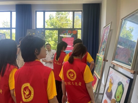 在宁波市民康医院,团队系统参访了中医理疗科、心理测量与治疗室、普通精神科病区、健康管理中心等核心科室,全面了解了心理健康服务从早期筛查评估、精准诊疗干预到科学康复重建的全过程闭环体系。在医生指导下,队员们体验了心理量表测评,学习了实用的情绪调节技巧,直观感受到医院“医防结合、身心共调”的前沿服务理念。座谈交流环节,团队系统学习了心理危机识别、防范干预及社区转介等关键工作机制。艺术康复展区内,由患者创作的精美手工艺品与油画作品深深触动了队员们,大家真切体会到“艺术疗愈”在心理康复中的独特力量。