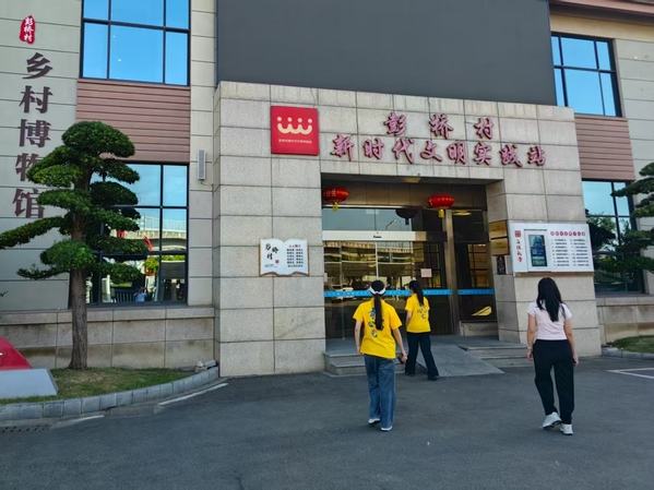 在慈溪市彭桥村乡风文明馆,实践团队感受彭桥村历史文化与乡风民俗。实践队员通过互动屏幕和讲解员的介绍,了解彭桥过往和乡村发展状况。馆内3D街道图留影屏方便打卡纪念,投影仪播放村歌、纪录片,生动讲述彭桥故事,聚音灯自动讲解各区域,实景沙盘助游客了解村庄布局。