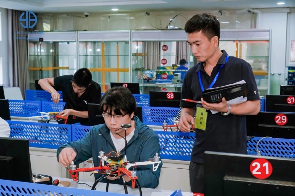 比赛现场,选手们从容应战。理论考核中,他们凭借扎实的专业功底精准作答;实操环节里,从无人机组装、系统调试到故障排查,每一项复杂操作都完成得娴熟流畅,充分展现了新时代技能人才的精湛技艺与敬业态度。