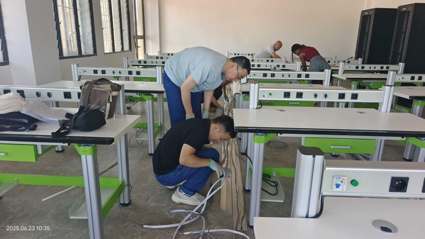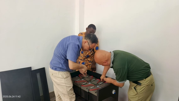 电源动力系统布线是第一个“硬骨头”。实验室对电路要求极高,当地工人从未接触过这样的专业工程,看着图纸一脸茫然。“没关系,我们教!”陈子珍带头拿起工具,剥线、接线、安装电柜,一步一步地示范。“从开槽埋线、电柜安装到线路调试、空调接线、吊顶高度调整……几乎每一步都是我们现场示范,工人一边学习一边建设。”陈子珍说。当地工人原本只会简单的照明电路连接,“中国老师教得很细致,我学到了很多实用技能。”大家都表示大有收获,当基础工程完成后,当地工作团队兴奋地在场地内合影,为能参与这样的工程感到自豪。