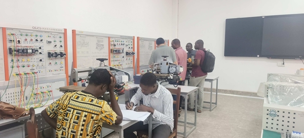试运行及培训期间,消息传遍了贝宁的职业教育圈。当地高校的教师们闻讯赶来,教室里坐满了人,连窗外都站满了好奇的学生。“非常感谢中国专家!”阿卡萨多中贝友谊技术学校校长一路见证了这座鲁班工坊从无到有的过程,连连表示感谢。“这是我第一次见到这么先进的设备,我希望能在这里学电工技术。”参加培训的当地学生对未来充满了期待。