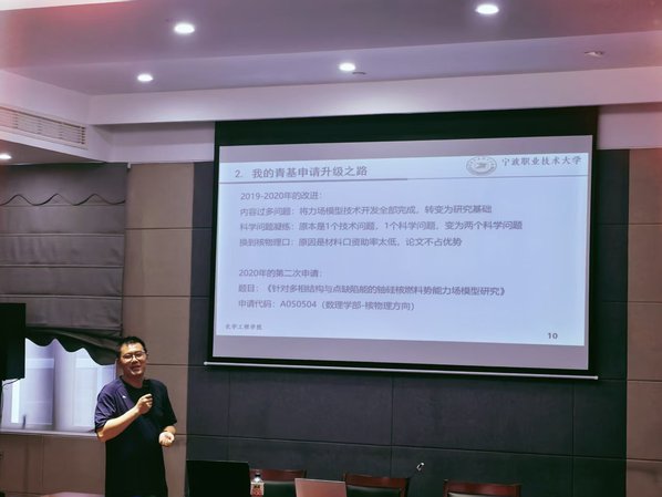 9月18日下午,由科研处、职业教育教师培训学院主办,化学工程学院承办的第128期行知讲坛在联盟大厦报告厅三如期举行,本次讲座由宁波职业技术大学化学工程学院讲师刘臻主讲,主题为《青基申请升级之路——国自然基金申请经验分享》,共有90余名师生参与本次讲座。