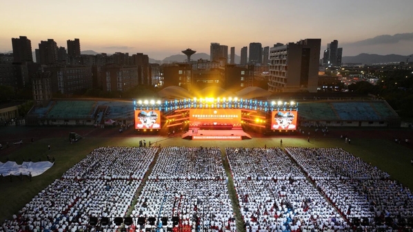 10月10日晚,宁波职业技术大学田径场上,灯光璀璨,热闹非凡,学校2025级新生开学典礼暨迎新晚会在这里隆重举行。