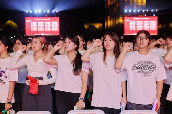 新生宣誓环节,5041名2025级新生掷地有声地喊出了他们的誓言,嘹亮的声音响彻全场。