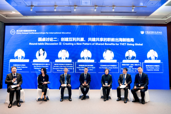 10月29日,校长吴向鹏应邀出席了第26届中国国际教育年会“产教融合 共建共享:推动职教出海高质量可持续发展论坛”并主持“创建互利共赢、共建共享的职教出海新格局”圆桌讨论。中国教育国际交流协会会长刘利民、匈牙利文化与创新部副国务秘书帕尔迈·盖尔盖伊(Pálmai Gergely)、中国教育国际交流协会秘书长杨军、中国教育部职业教育与成人教育司副司长李智、综合改革处一级调研员李红东等领导和嘉宾出席论坛、来自国内外院校、相关教育机构、企业等近300名代表参加了本次论坛。