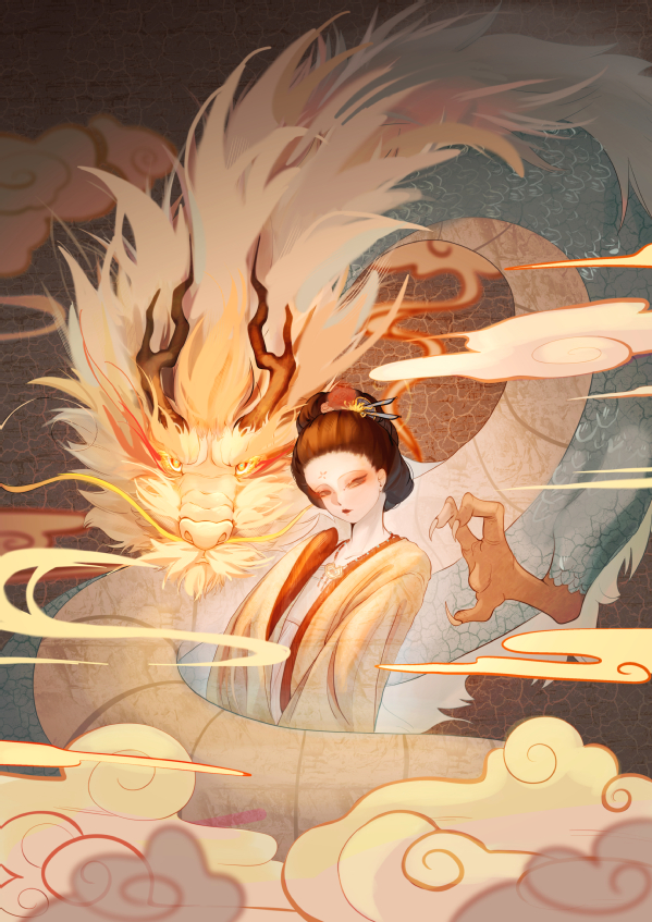 作品《龙韵仕风》以十二生肖中的“龙”为主题,融合古典元素,描绘出神龙威仪凛然、腾云驾雾之姿,旁侧仕女发髻精致、衣袂飘逸,与龙相映成趣。整体以细腻笔触与温暖色调,诠释出龙的神秘力量与东方古典韵味,展现出生肖文化的独特魅力。