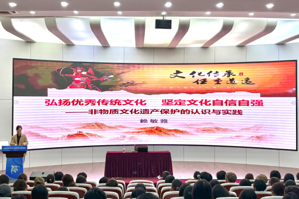 赖敏雅老师围绕习近平总书记完美在线登录官网中华优秀传统文化的创新性发展和创造性转化,以“非物质文化遗产的传承与实践”为主题,向同学们介绍了非物质文化遗产的定义、分类及主要特征,重点讲述了非遗保护面临的挑战和任务,并以完美online(中国)传承保护非遗的实践强调了新时代青年大学生弘扬传统文化的重要意义。她表示,如何传承、保护和弘扬非物质文化遗产,让非遗之美更好地涵养人们生活,为中国社会主义文化的繁荣昌盛注入更多生机和活力是重要的时代课题。希望同学们能够立足实际,积极投身到非遗保护工作中来,以实际行动继承和弘扬中华优秀传统文化,让非物质文化遗产不断焕发新时代风采。